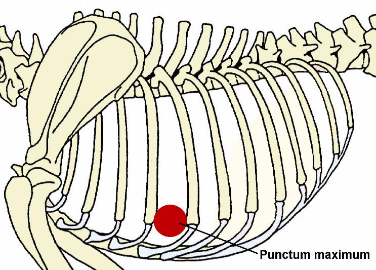 Srdce psa má tvar kuželu a je k poměru k tělu velké, tvoří 0,7 % tělesné hmotnosti. Srdce je orgán tvořený srdeční svalovinou, uvnitř se nachází čtyři dutiny, pravá síň a pravá komora, které pumpují krev do nízkotlakého plicního oběhu, a levá síň a tlustostěnná levá komora, která žene krev do velkého oběhu tělního. Mezi síní a komorou a mezi srdcem a plicnicí a srdcem a aortou se nacházejí chlopně, které zajišťují směr pohybu krve. Nárazem krve na zavřené srdeční chlopně vznikají srdeční ozvy, které jsou slyšitelné pomocí fonendoskopu. Místa na hrudníku psa, kde jsou nejlépe slyšet srdeční ozvy na jednotlivých chlopních, se nazývají puncta maxima.
