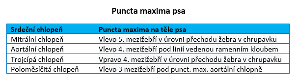 Srdce psa má tvar kuželu a je k poměru k tělu velké, tvoří 0,7 % tělesné hmotnosti. Srdce je orgán tvořený srdeční svalovinou, uvnitř se nachází čtyři dutiny, pravá síň a pravá komora, které pumpují krev do nízkotlakého plicního oběhu, a levá síň a tlustostěnná levá komora, která žene krev do velkého oběhu tělního. Mezi síní a komorou a mezi srdcem a plicnicí a srdcem a aortou se nacházejí chlopně, které zajišťují směr pohybu krve. Nárazem krve na zavřené srdeční chlopně vznikají srdeční ozvy, které jsou slyšitelné pomocí fonendoskopu. Místa na hrudníku psa, kde jsou nejlépe slyšet srdeční ozvy na jednotlivých chlopních, se nazývají puncta maxima.